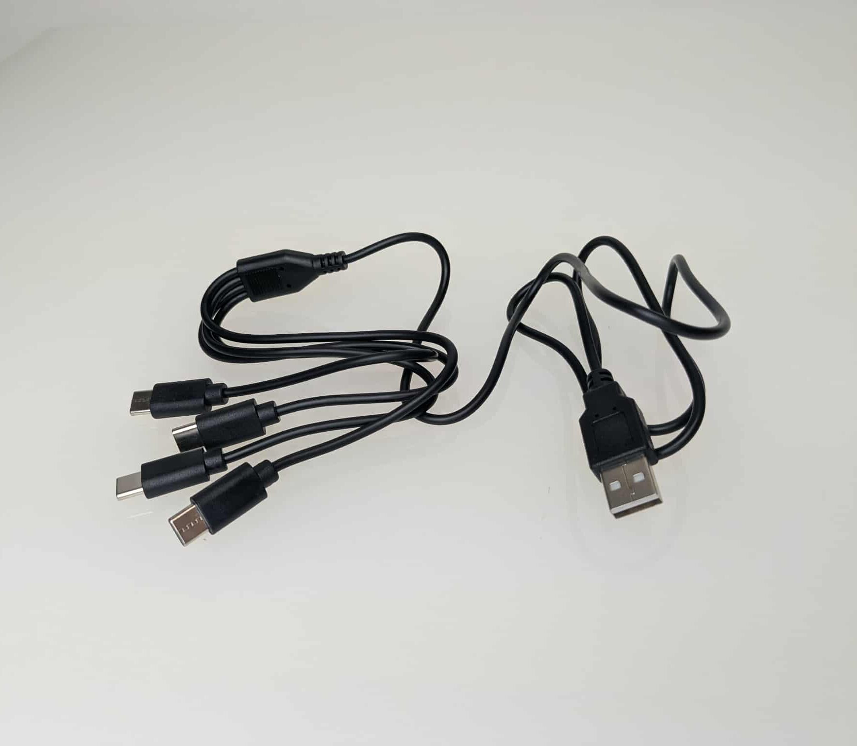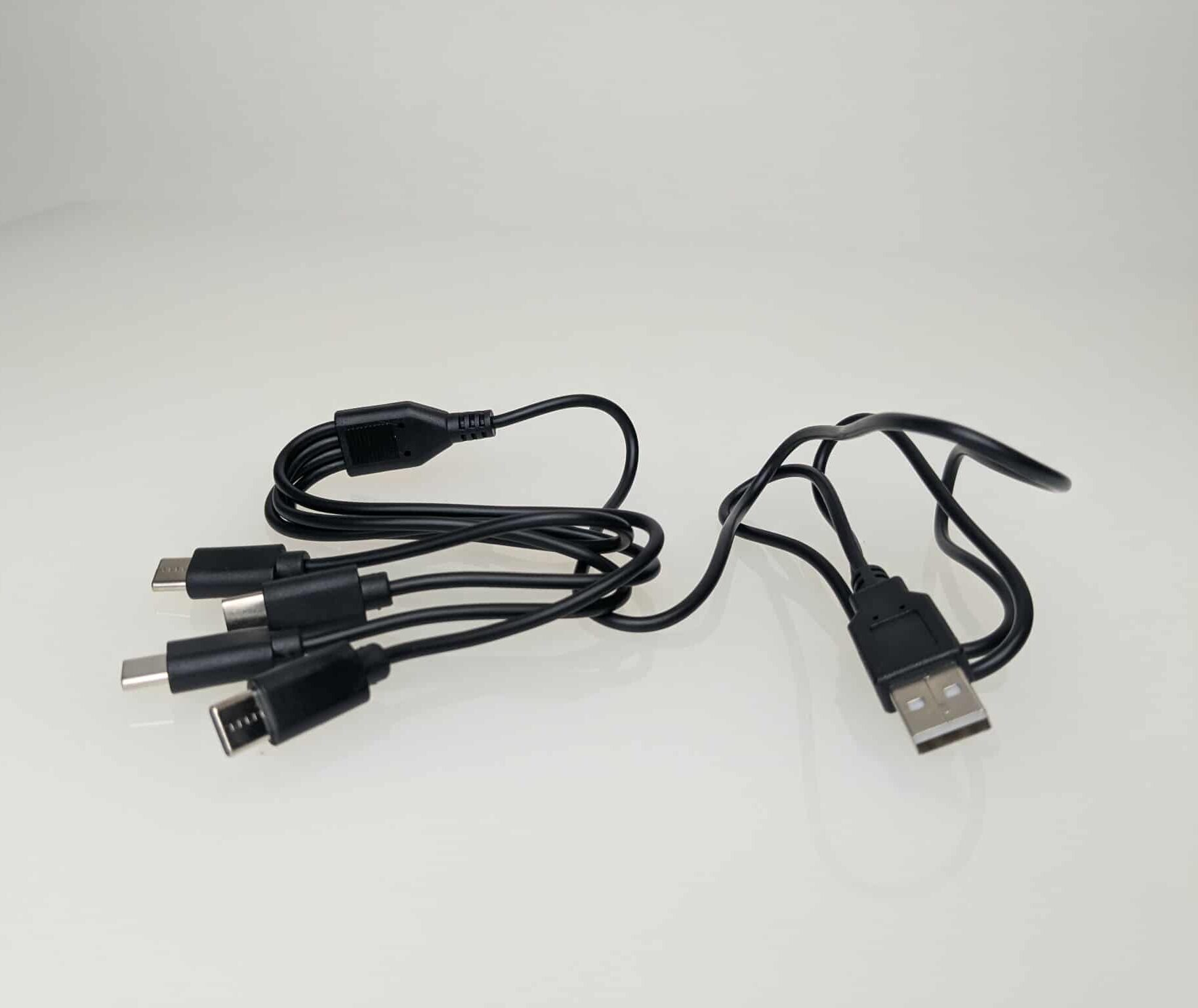 Quad Charger for Silent Sound System 10-Channel Silent Disco Headphones charges up to 4 headphones at a time. USB A to USB C Quad-Charger cable.