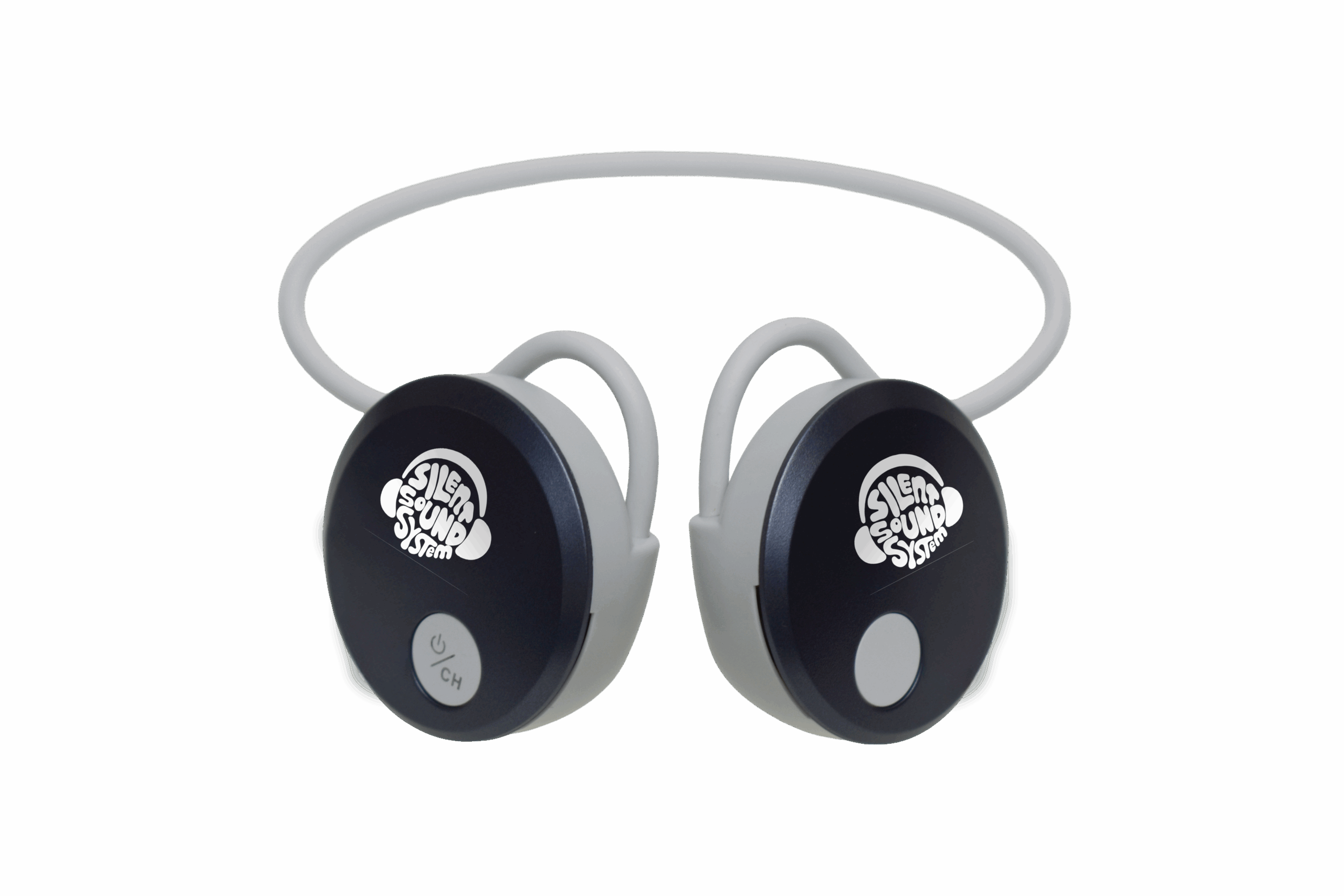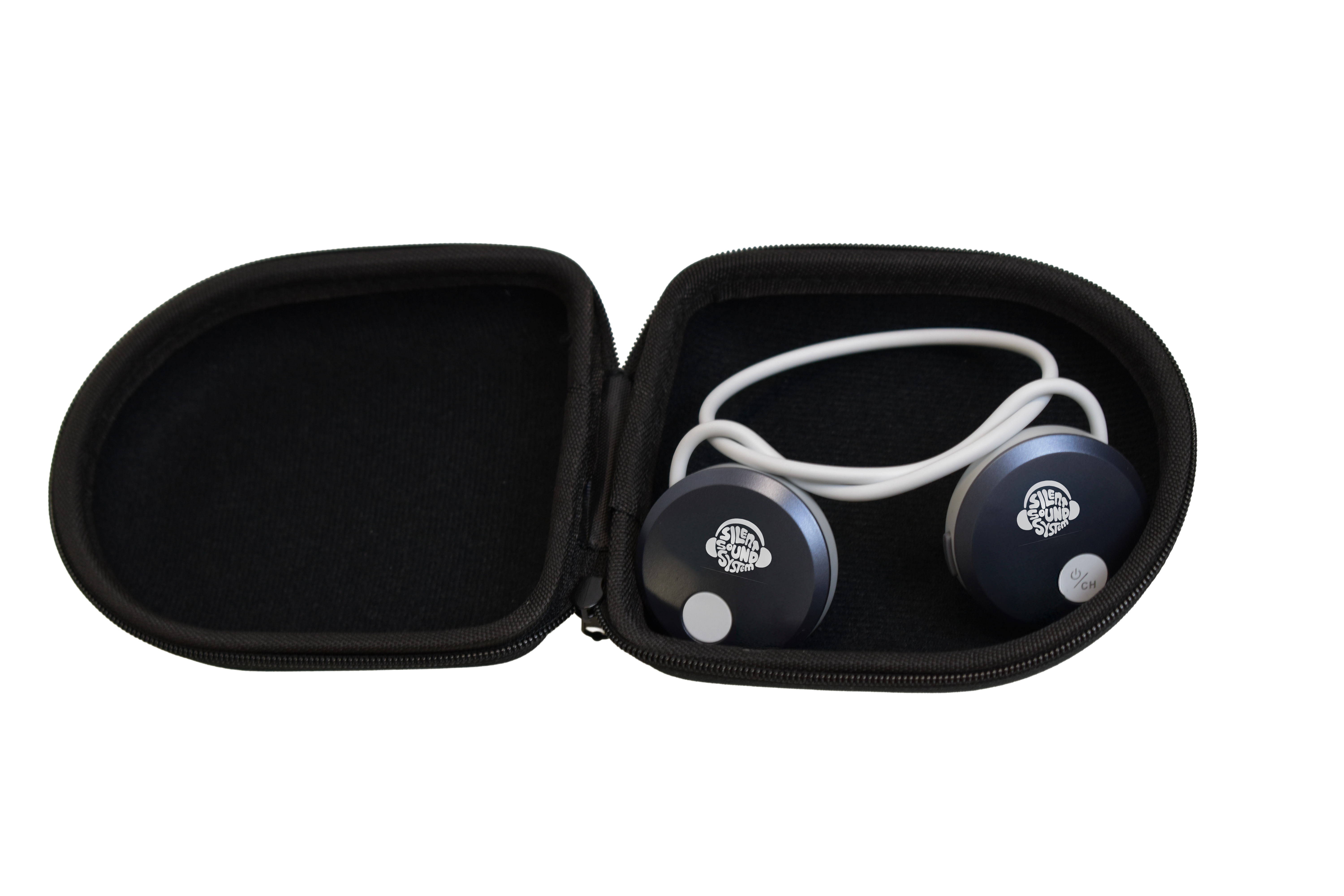 The Silent Sound System 3-Channel Wrap Around Wireless Sport Headphones are our newest silent disco headphone style. Extra light-weight and sleek, foldable design with an included zipper case for easy storage. Perfect for fitness, yoga, cycling, and more!